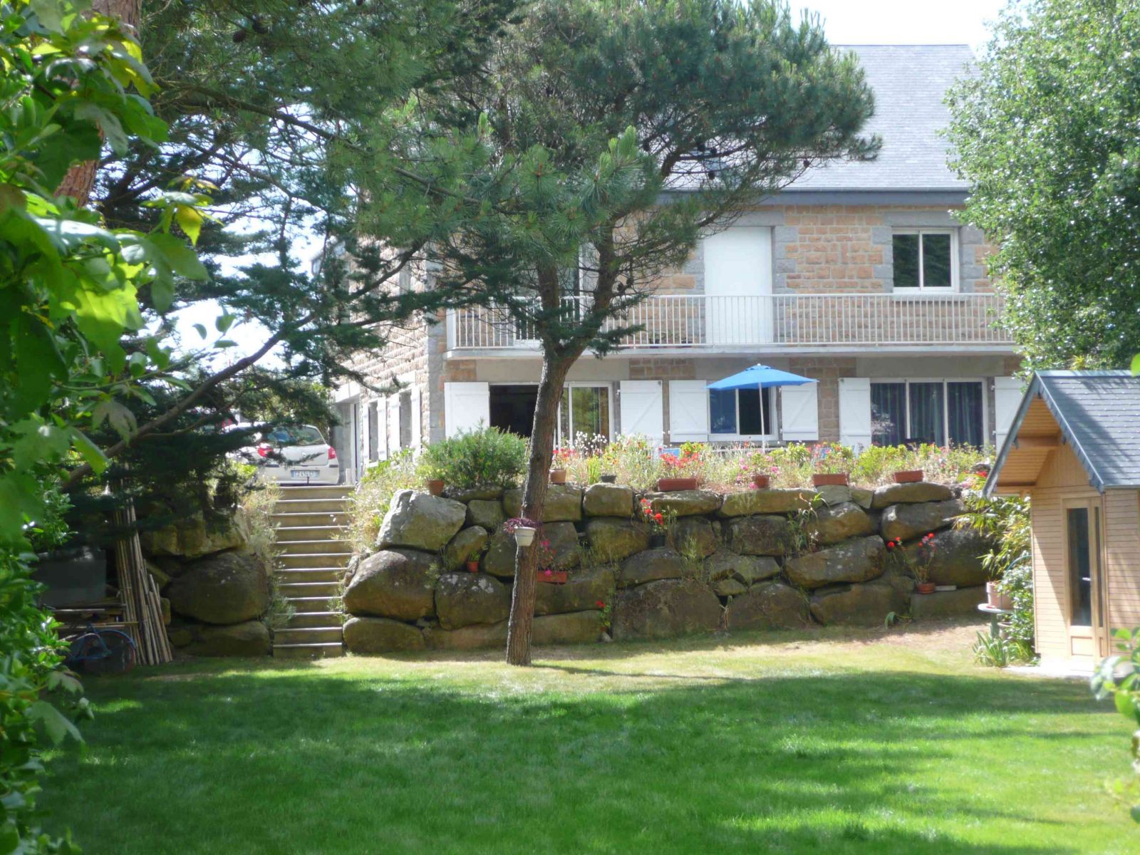 En front de mer avec accès direct à la plage l'appartement au rez-de-chaussée est totalement indépendant de l'étage. Il se situe sur un terrain arboré de 3200m2, à 600 m du centre de Jullouville où se trouvent entre autres commerces, un Super U, 2 boulangeries, 2 bouchers charcutiers traiteurs, une librairie, et où a lieu un marché 2 fois par semaine .